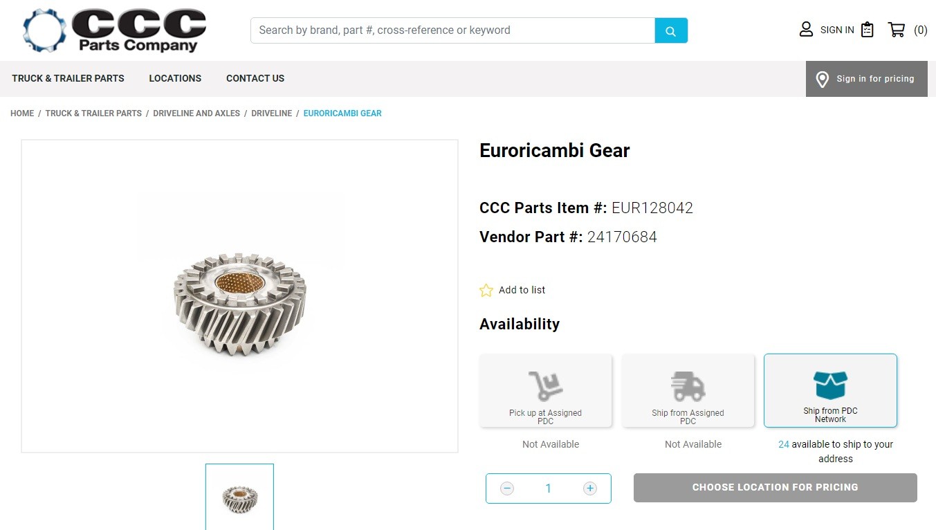 CCC Parts is the leading provider of genuine OEM gearing and drivetrain components in the United States. Established in 1946, CCC Parts have been serving customers across US for over 75 years. CCC Parts associates have access to 500,000 SKUs which will be delivered through 10 strategically located distribution centers to serve next-day standard service across US.