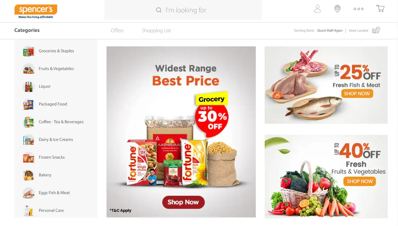 Based out of Kolkata, Spencer’s is one of the largest & widely known retail chains in India. Having presence in over 35 cities, Spencer’s offers products from multiple categories – food, apparel, electronics and many more. Spencer’s also has Hyper market model of retailing called Spencer’s Hyper.